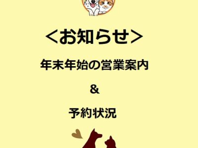 セミナー・研修その他により下記日程臨時休業いたします。 ご迷惑おかけして申し訳ありません。 【臨時休業】 2026年 2月1日(日)10時~17時 2月4日(水)終日 ●シッター・ホテル・日帰り預かりは上記の臨時休業以外は年中無休です。